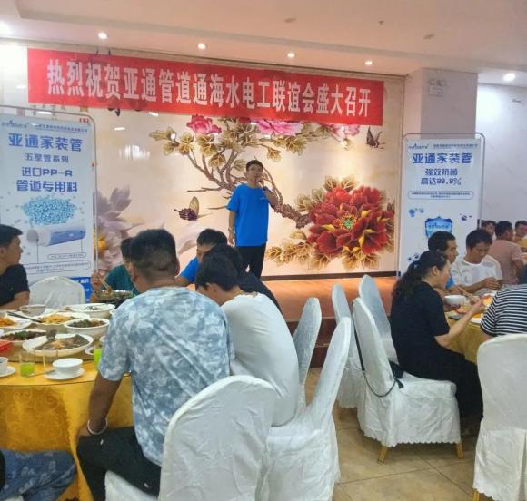聯(lián)誼會正式開始后,首先由此次聯(lián)誼會的主辦方代表、亞通通??h區(qū)域負責(zé)人、也是此次聯(lián)誼會的主持人段利斌上臺進行發(fā)言。他對此次能與眾多工友師傅們一起交流經(jīng)驗、探討學(xué)習(xí)感到十分榮幸。也對諸位來賓百忙之中抽出時間來到活動現(xiàn)場,表示誠摯的感謝。尤其最感謝在通海地區(qū)對亞通管道推廣做出的卓越貢獻的通海區(qū)域服務(wù)商。