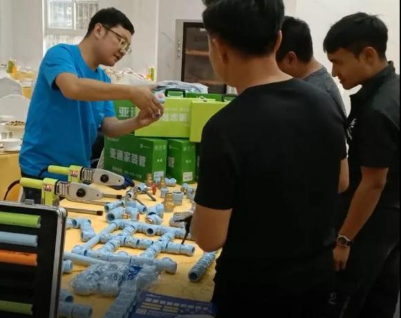 不過,大家并沒有忘記此次聯(lián)誼會一項“特殊”的節(jié)目,由專業(yè)的水工師傅為大家進行熔接演示。只見師傅熟練地通過標(biāo)準(zhǔn)步驟將管道與管件牢固地熔接在一起,并讓圍觀的專業(yè)人士們親自體驗與測試,零距離的體會到了亞通管道在質(zhì)量與品質(zhì)方面的獨到之處。