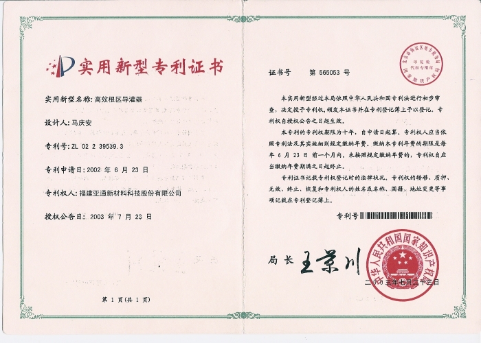 二十多年來,研發(fā)中心完成科技成果轉(zhuǎn)化百余項(xiàng),涉及建筑、高速公路、水利、通信、電力、農(nóng)業(yè)排灌、城市給水、排水、排污系統(tǒng)、現(xiàn)代園藝等領(lǐng)域。完成國(guó)家、省級(jí)、市級(jí)項(xiàng)目20多項(xiàng);擁有國(guó)家授權(quán)公開專利110多項(xiàng);主持和參與制修訂國(guó)家、行業(yè)、地方標(biāo)準(zhǔn)90項(xiàng),10多項(xiàng)科技成果經(jīng)過省部級(jí)新產(chǎn)品鑒定,先后獲得省級(jí)企業(yè)技術(shù)中心、高新技術(shù)企業(yè)、中國(guó)塑料管道工程技術(shù)研發(fā)中心等榮譽(yù)稱號(hào)。